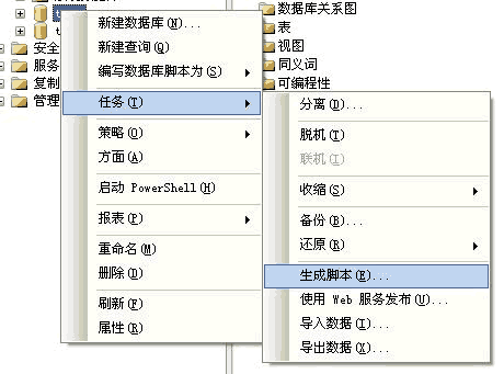 拷貝生成的sql語句選擇服務器的數據庫。右鍵新建查詢-->把第一步生成的語句拷貝進去執行。