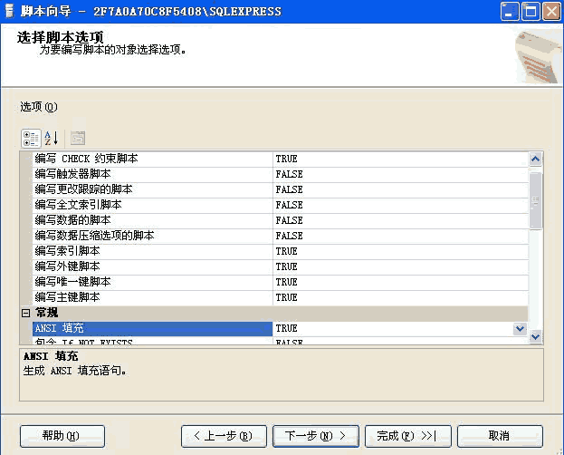 按向導選擇需要導出的數據庫下一步到“選擇腳本選項” 選擇需要生成的類型,注意“為服務器版本編寫腳本”處選擇對應的腳本。
